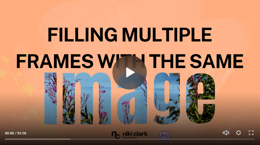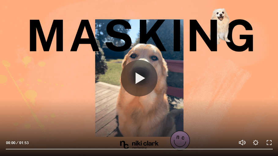 The word “MARKETING” is over the background image of Niki sitting on a sofa, but she is “masking” a portion of the word.